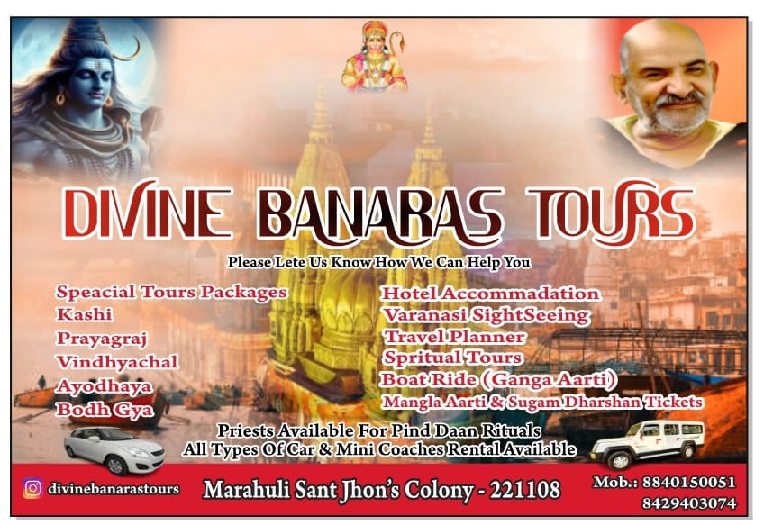 Plan your spiritual and cultural journey with Divine Banaras Tours — your trusted travel partner in the heart of spiritual India. We specialize in customized tour packages across Varanasi, Prayagraj, Ayodhya, Bodh Gaya, and nearby sacred sites, offering seamless travel experiences designed for families, pilgrims, and explorers. Our services include: Guided visits to ancient temples like Kashi Vishwanath, Durga Mandir, Sankat Mochan, and Bharat Mata Mandir Sacred rituals including Ganga Aarti, Subah-e-Banaras, and Bhasm Aarti at Vishwanath Temple Sunrise & sunset boat rides on the Ganges, offering breathtaking views of the ghats Day trips to nearby spiritual hubs like Sarnath, Vindhyachal, and Chunar Fort Comfortable accommodations, luxury transportation, and 24/7 local support Dedicated packages for solo travelers, families, kids, and senior citizens Multilingual tour guides for an immersive and informative journey Let Divine Banaras Tours be your companion in discovering the timeless charm of India’s holiest cities — with peace of mind, spiritual depth, and exceptional hospitality.